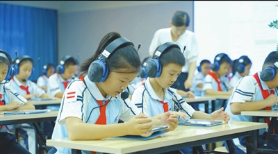 ③海口市滨海第九小学美丽沙分校学生在利用国家智慧教育平台上课。
