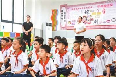 ④海南定安县第一小学的学生们在唱琼剧。新华社记者 张丽芸 摄