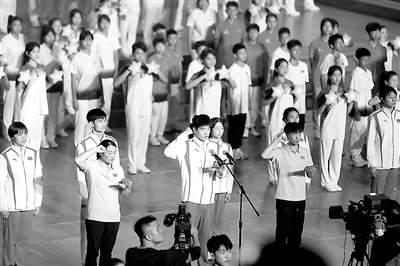 图为潘展乐、武海燕、史明玉等体育界杰出代表联合发出倡议,呼吁全国青少年走进运动场,强健体魄,突破自我,为建设体育强国贡献力量。 大会组委会供图