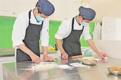 无锡市特校副校长周嬿表示,自“洲际惠喑学院”成立以来,每年招生12人左右,主要以无须面客的客房、面点制作等岗位为主。由第三方提供教育基金,每名学生在校期间按照每月500元的标准领取“工资”。企业派来的实训指导教师都是洲际酒店集团出色的员工,学生在跟岗实习前,酒店会帮他们配备至少两名师傅作为“职业成长导师”。带徒的师傅会简单的手语,从生活到工作,全程陪伴学生,确保实习期间学生的身心健康发展。