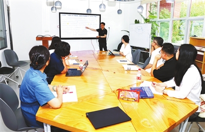 在北京市十一学校,史建筑与语文教研组教师研讨。 李强 摄
