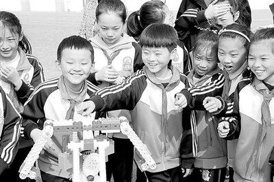 位于山东省东营市的中国石油大学(华东)附属中学小学部举行“科普进校园 点燃科技梦”科技教育进校园活动。视觉中国供图