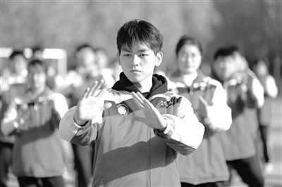 11月27日,河南省焦作市温县一中高二学生在体育课上练习太极拳。温县是太极拳发源地,该县自2001年起将太极拳引进校园,通过编写太极拳教材、开设太极拳课程、大课间练习太极拳、定期举办师生太极拳比赛等活动,推广普及太极拳,传承太极文化。目前,该县中小学有5万余名学生练习太极拳,习拳健身成了当地校园里的亮丽风景线。