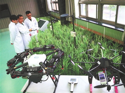 南京农业大学智慧农业创新团队应用自主开发的作物生长监测诊断仪监测作物生长状况。学校供图