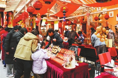 ①观众在展厅里逛庙会。 中国非物质文化遗产馆 供图