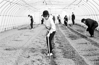 学生们在蔬菜大棚里辛勤劳作。 学校供图