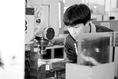 江苏太仓中专模具专业学徒生在合作企业学徒培训中心进行技能训练。