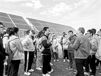 清华大学教授刘建国在“可持续发展探究”课上指导学生了解“双碳”目标下的光伏发电技术。学校供图