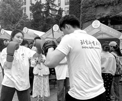 在当天的“12355爱‘心’百校行”活动中,23所北京高校和7家共青团中央直属事业单位搭建起“守护‘心’成长 青春游园会”。沙盘体验、心理学实验、拳击释压力等各项活动,吸引了大量学生参与。“不同的活动让同学们释放压力,获得积极情绪,就像在心里种满花。”赵娅汛说。