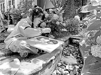 幼儿在户外写生。 幼儿园供图