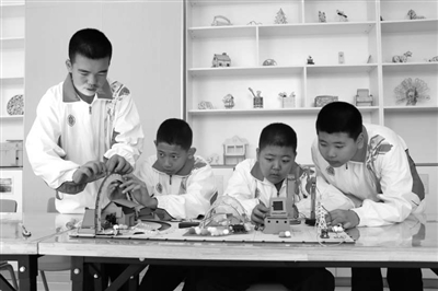 ①康巴什区第一中学学生在科创教室中研究低碳环保装置。