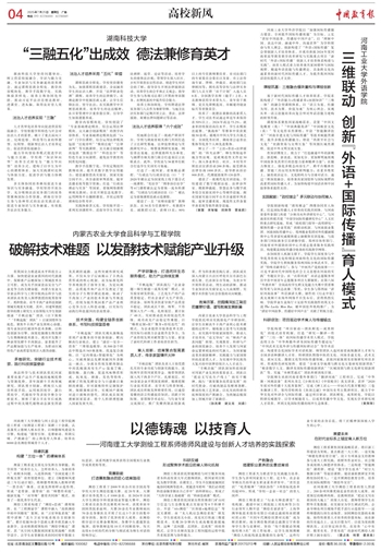 河南工业大学外语学院以“加强国际传播能力建设,全面提升国际传播效能”为目标,立足“讲好中国故事,传播好中国声音”,以“理解中国、表达中国、融通中外、沟通世界”为学科使命与育人理念,创新构建了“外语+国际传播”复合型创新人才培养体系,并成功获批2024年度河南省高等教育教学改革研究与实践重点项目“新时代‘外语+国际传播’创新人才培养体系构建与实践”。该育人模式着力培养兼具家国情怀与国际视野、精通外语技能与传播理论、具备跨文化沟通素养的新时代国际传播人才,为提升我国国际话语权提供人才支持。