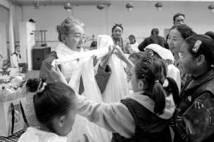 孩子们给巴桑献上哈达,送上迟到的教师节祝福。