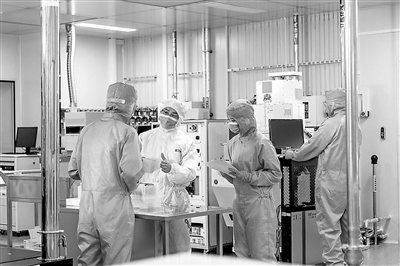 电子科技大学集成电路科学与工程学院(示范性微电子学院)院长张万里(左二)在指导学生做实验。学校供图