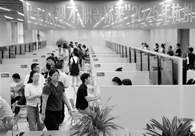 9月24日,“金秋迎才,职等你来”2025年杭州市总工会秋季专场招聘会在杭州市人才市场举行。图为求职者在现场。 新华社记者 韩传号 摄