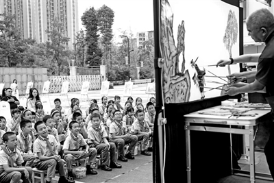 近日,一场非遗进校园活动在四川眉山天府新区实验学校举行,非遗传承人正在为同学们表演非物质文化遗产皮影戏《智收猪八戒》。 通讯员 翁光建 摄
