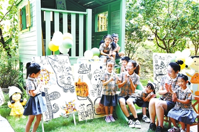 为发展孩子们的语言表达能力和想象力,浙江省东阳市第二实验幼儿园每周都会开展户外游戏故事分享活动。孩子们不仅可以聆听有趣的故事,更在自然的浸润中学会了表达情感,提升了社会交往能力。图为教师与孩子们围坐在一起,共同聆听孩子创作的故事。吕婧仪 文 李一鸣 摄