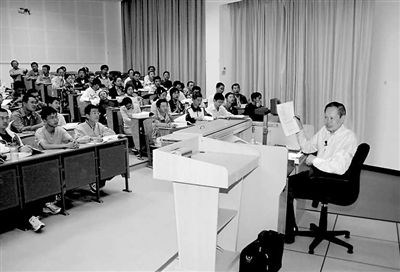 2004级物理系学生刘俊锐成了那一批中的幸运儿。在刘俊锐印象中,杨振宁的授课颇有见解和技巧。“记得讲到‘熵’这个概念时,杨先生说:‘书里的讲法不好,我们来这样讲。’他让我们完全忽略这个概念的存在,带我们做一些热力学上的推导,在推导过程中,‘熵’的概念被‘重新’发现和定义,这种教法让抽象概念变得生动自然。”