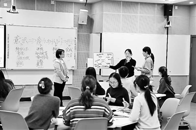 一是在知识逻辑上,突出前沿性与融合性。在前沿性上,把学科本体、学习科学、教育科学的最新研究成果纳入课程,建立科学研究与教育实践、教师教育的课程联动体系。在融合性上,加强教师教育学科与文理学科、新兴学科的融合,推进通识教育、专业教育、师范教育课程的衔接贯通。建设了教师教育特色学科集群,文史哲、社会科学、艺术体育三大文科集群,数统信息、物质科学、生命生态三大理工科集群,七大学科集群联动打造教师教育课程发展保障机制。依托学科带头人负责制,建设了194个科教融合教师团队,集科学研究、人才培养、队伍建设功能于一体。