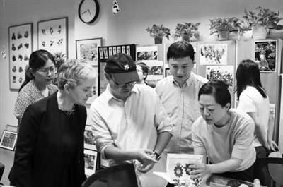 学校教授张娟向斯特灵大学副校长介绍原创绘本《金沙神鸟》