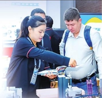 第86届中国教育装备展示会现场,参展观众体验智能教育产品应用。