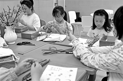 ③中小学生们体验制作国风小饰品。 新华社记者 刘颖 摄
