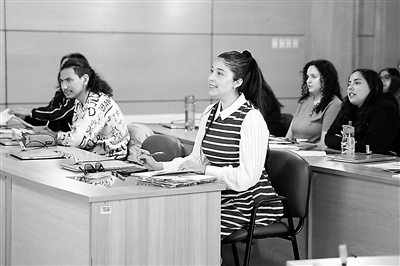 12月1日,智利麦哲伦大学孔子学院正式揭牌。据悉,该学院由北京语言大学与智利麦哲伦大学共同建设,是目前世界上纬度最南的孔子学院。图为人们在位于智利蓬塔阿雷纳斯的麦哲伦大学孔子学院上中文课。