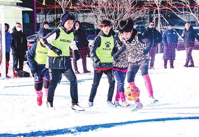 近日,辽宁省沈阳市浑南区粮仓文创园冰雪足球赛正式开踢,赛事以“来沈阳‘足’够快乐”为主题,吸引众多青少年足球爱好者参与。邹新江 摄