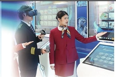宁波大学学生借助VR实验室开展航空飞行专业技能实训学习。学校供图