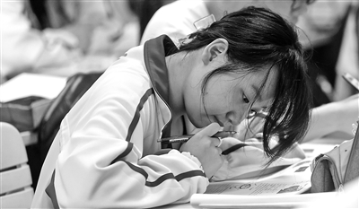 青岛十七中教室内,高中生认真进行考前备考,查阅复习资料,翻阅各种试卷。视觉中国供图