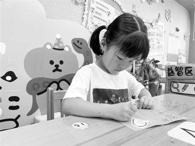 幼儿在给朋友“写信”。蒋蕾 摄