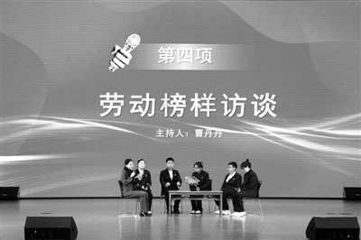 在学院寒假劳动实践总结表彰会上,主持人对5名获奖学生进行现场访谈