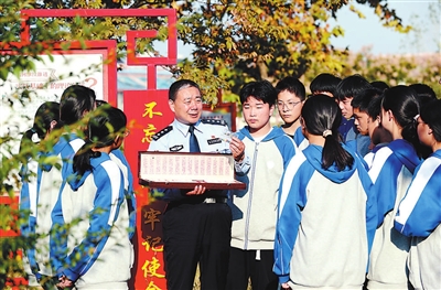 江苏省宿迁市民警深入校园开展普法宣传活动。 视觉中国供图