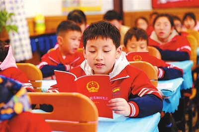 江苏省小学生在学习宪法知识。 视觉中国供图