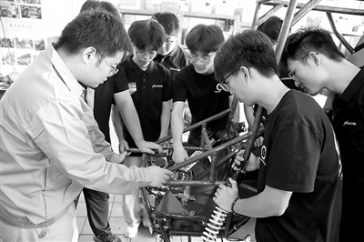 汽车工程学院教师吴政强指导学生实训。 学校供图