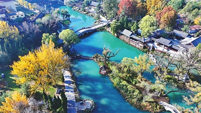 11月5日,游客在山东省青州市南阳河景区赏景游玩(无人机照片)。立冬将至,全国各地秋意仍浓,以斑斓色彩迎接冬天到来。 新华社发
