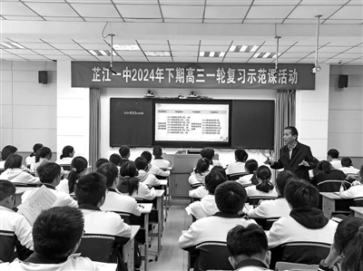 湖南省怀化市芷江一中党委书记杨华山在上高三一轮复习示范课。学校供图