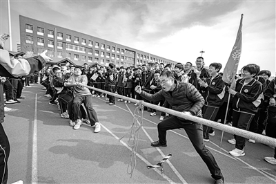 山东省济南市历城二中学生在进行拔河比赛。 学校供图