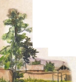西南联大新校舍一角。原画为赵宝煦1946年6月10日作,赵阳提供。