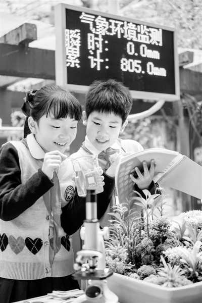 重庆市巴蜀小学教育集团学生开展科学探究。