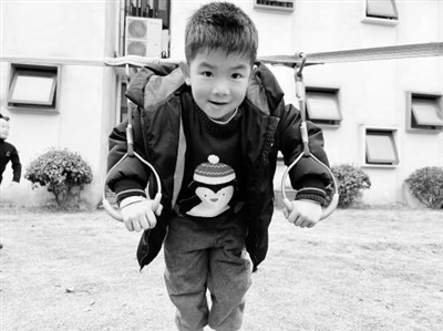 孩子在练习抓吊环。 江西省芦溪县源南中心幼儿园供图