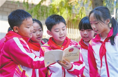 江苏南通墩头人民法庭内,墩头镇中心小学学生在学习《中华人民共和国预防未成年人犯罪法》。 视觉中国供图