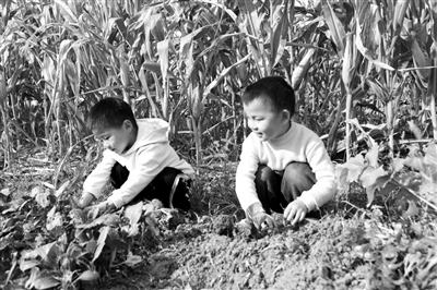 浙江省诸暨市暨南街道街亭幼儿园中班的孩子们前往菜园进行蔬菜种植。 陈霞芳 摄