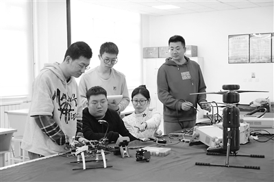 沈阳理工大学装备工程学院学生在实验室做旋翼无人系统测试试验。 孙立刚 供图