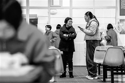 12月12日,张桂梅在华坪女高食堂内同教职工交流。