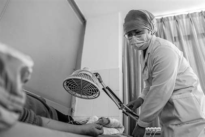 12月13日,华坪女高第一届毕业生、华坪县中医医院主治医师刘琪美在为病人治疗。