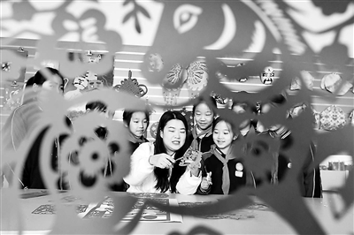 12月24日,在河北省广平县第四实验小学课堂上,教师在指导学生创作剪纸作品。程学虎 摄