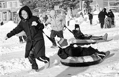 12月24日,呼伦贝尔额尔古纳市第二中学师生体验拉雪圈。内蒙古呼伦贝尔市自12月24日至28日给一至八年级学生放5天“雪假”,其间无课堂教学和书面作业,鼓励学生积极参加各类户外冰雪运动、研学活动。新华社发