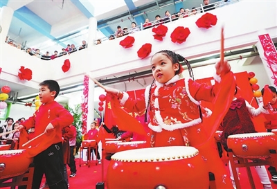12月27日,宁夏银川市邮电幼儿园举办迎新年活动,让孩子们近距离感受中华优秀传统文化。图为孩子们在表演节目。 新华社记者 王鹏 摄