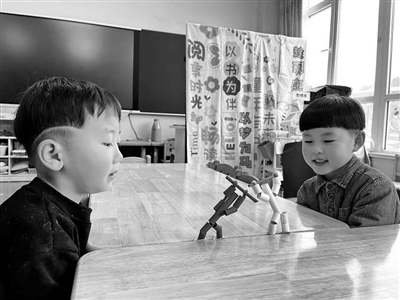 智慧缘起:美工区里的一场争执,成了教育智慧的起点。大班孩子们用吸管和扭扭棒创作小人时,李铭轩一句“站不起来怎么跳”,点燃了大家的探索热情。看着孩子们为了让小人站稳而反复尝试,教师没有直接指导,而是敏锐捕捉到这一自发兴趣,决定以材料支持和适度引导,让孩子们的创意自然生长。 活动过程:孩子们的探索从“站稳”开始:有的做了三条腿小人,有的用压扁吸管的方法固定部件,还有的小组直接玩起了比武游戏。当大家想让小人动起来却屡屡失败时,教师没有急于告知方法,而是应孩子们的请求搜索“吸管人比武”视频,引导他们发现“九节结构”的奥秘。面对吸管太细、剪孔易断等问题,教师及时补充了粗吸管和透明管,还请已掌握技巧的孩子示范如何竖穿关节,既保护了探索欲,又化解了技术难题。在比武环节,孩子们用沙画纸盒、乐高桌板搭建擂台,却遇到“胳膊够不着”“擂台易倒”等新问题。教师顺势引入传统竹节人文化,播放相关视频,并提供竹节人和单绳材料助力挑战升级。面对孩子们坚持用一根绳子尝试的执着,教师没有直接干预,只是在他们卡壳时建议“可剪成两段”。最终,孩子们在30多分钟的反复尝试中,学会了调整绳长、打单结固定。活动后期,他们不仅将户外玩具纳入擂台设计,还把制作方法分享给其他班级,真正实现了从“玩”到“创”的跨越。 整个过程,教师始终扮演“幕后支持者”角色,既让孩子们在动手操作中锻炼了逻辑思维、合作能力,又让传统竹节人文化以孩子们喜爱的方式得到传承,让教育智慧在顺应天性的过程中自然绽放。 (作者单位:山西省晋城市沁水县新乐幼儿园)